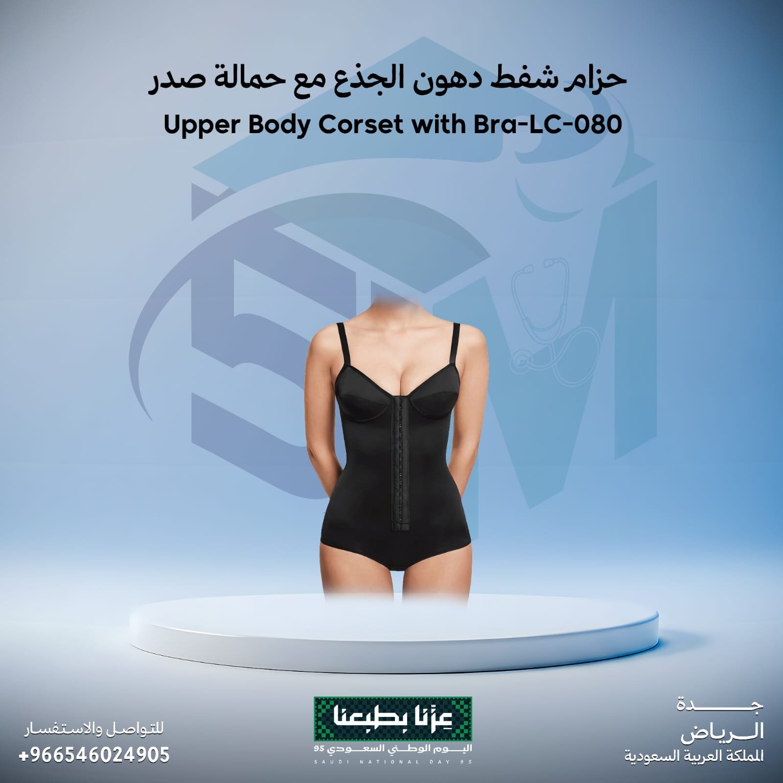 حزام طبي-تجميلي مصمم لدعم منطقة الجذع وشد البطن والخصر، مع توفير دعم إضافي للصدر لتحسين شكل القوام بشكل متناسق
