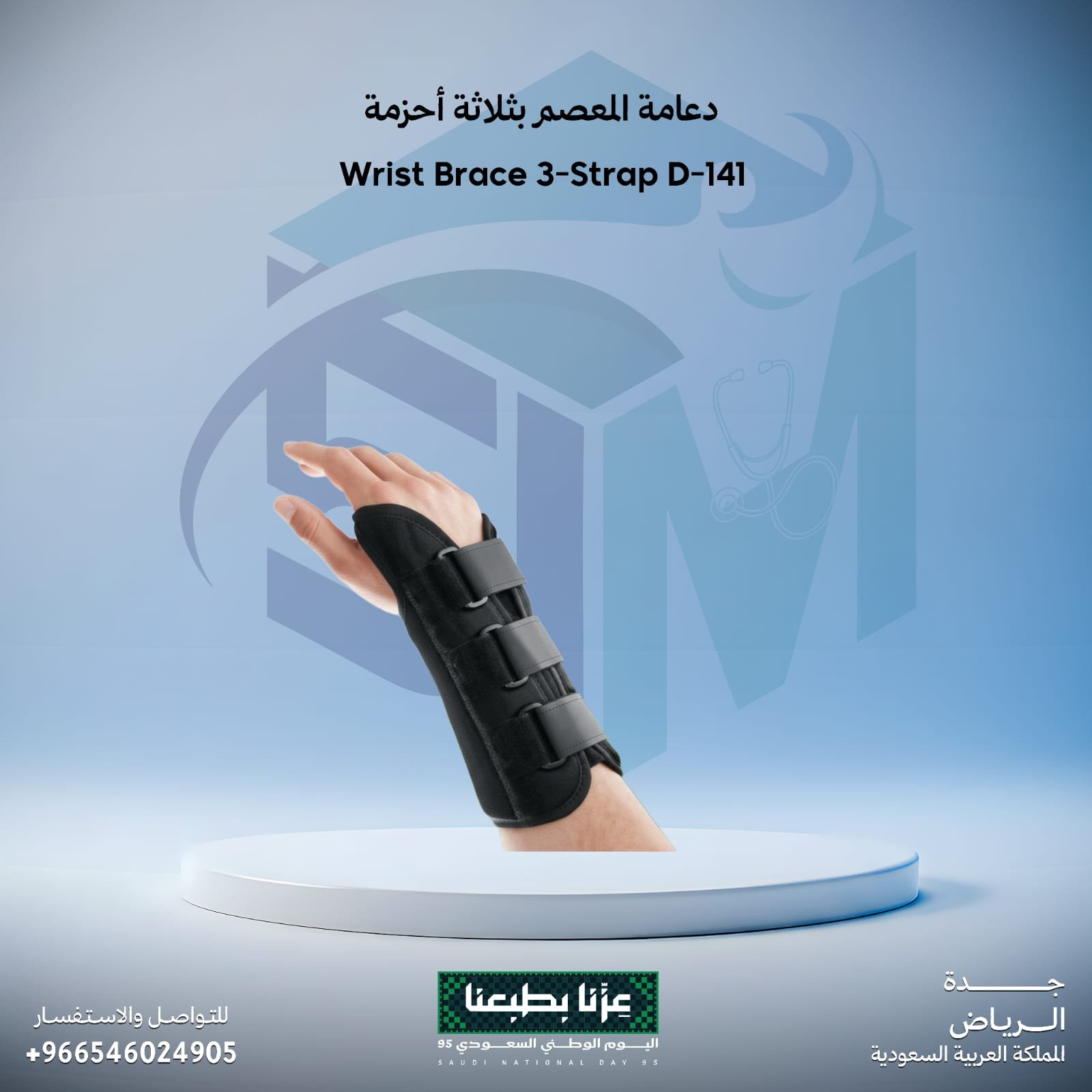 دعامة طبية مصممة لتثبيت المعصم ودعمه بشكل محكم، مع ثلاثة أحزمة قابلة للتعديل لضمان