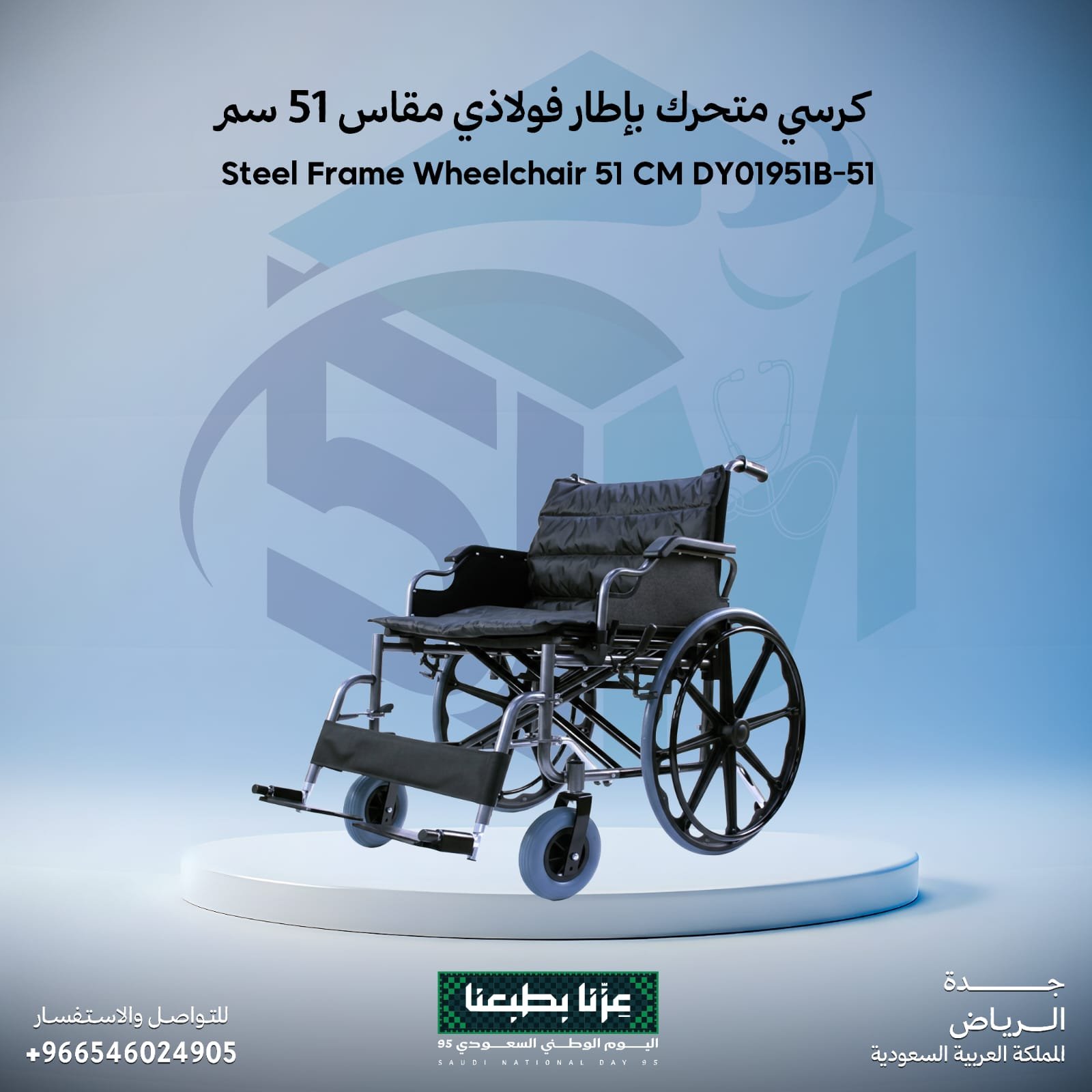 كرسي متحرك ذو إطار فولاذي طبي – مقاس 51 سم