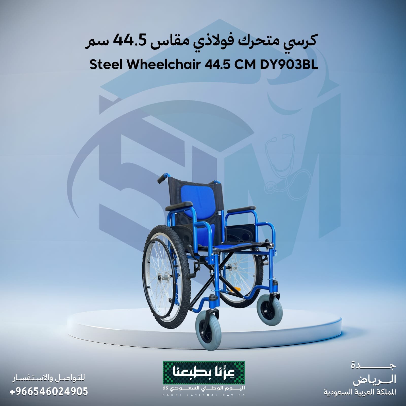 كرسي متحرك فولاذي طبي عالي التحمل – مقاس 44.5 سم