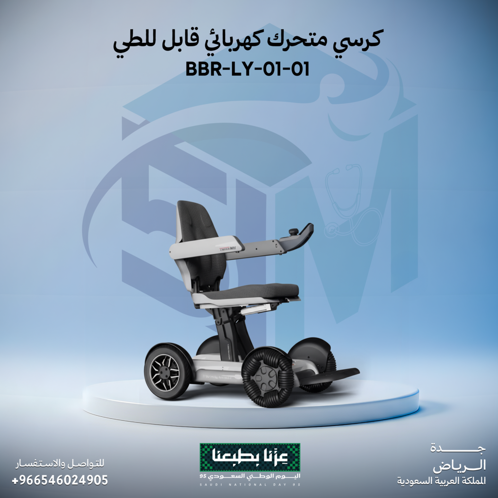 كرسي متحرك كهربائي قابل للطي مصمم لتوفير حرية الحركة والراحة للمستخدم.